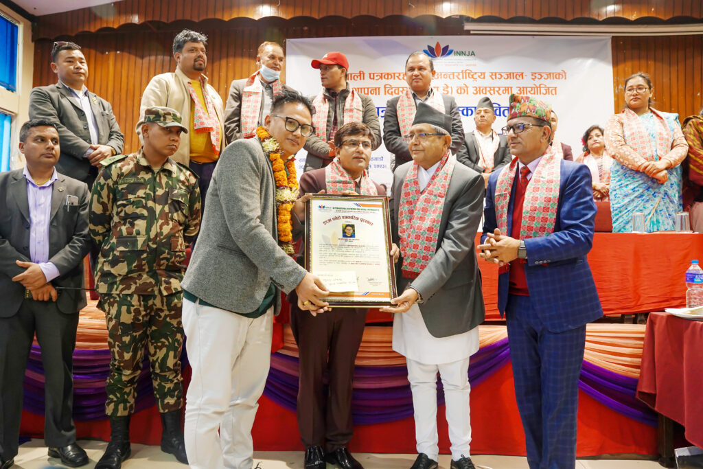 House of Representatives Speaker Bhoj Raj Ghimire awarded Shrestha on behalf of the International Network for Nepali Journalists (INNJA) which is the US-based organization of Nepalese journalists. Journalist Shrestha received Rs 50,000 and a felicitation letter at the moment.